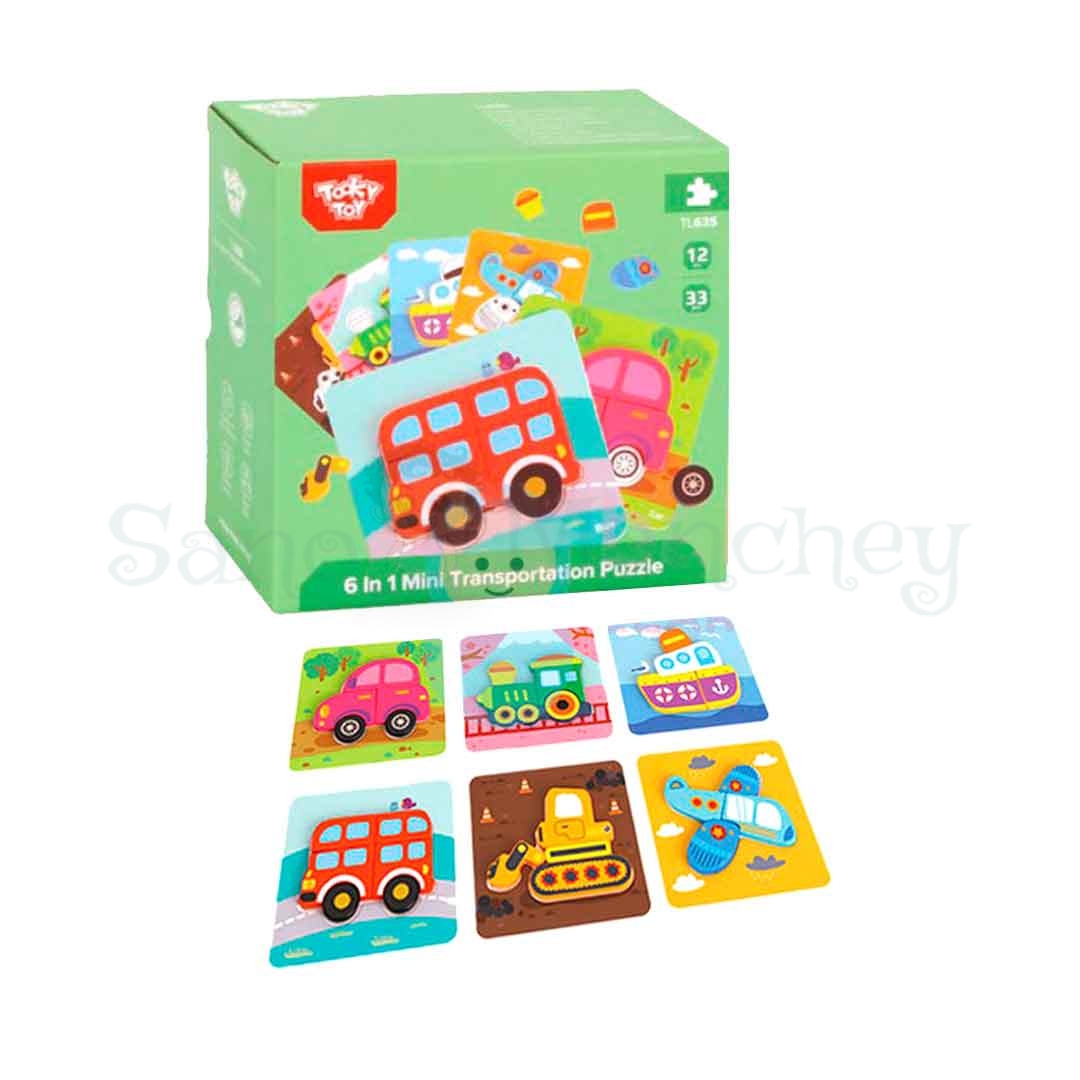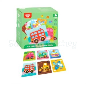 Wonderful set containing six first puzzles to complete. The set includes six sturdy, colorful background cards. The cards have a recessed shape to build the puzzle in with a line drawing of the vehicle they are going to build. Match the chunky wooden pieces to the drawing to complete your puzzle.