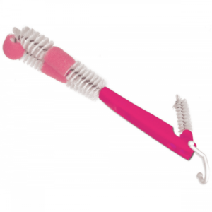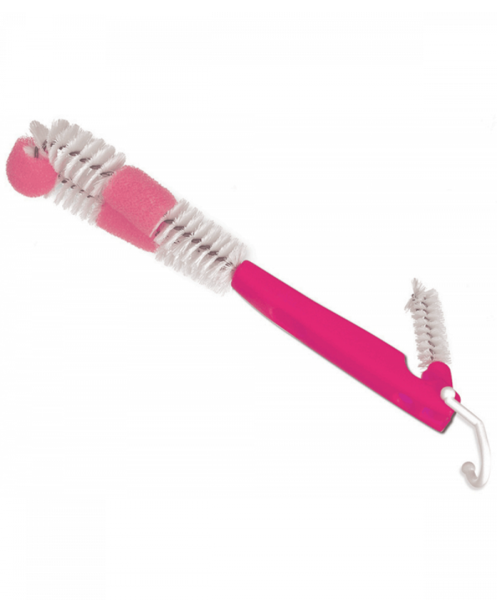 Curve bristles in front tip of bottle brush clean the bottles completely. Round bristles in the end of nipple brush for cleaning nipples thoroughly. After each using, the same brush could be folded down of handle