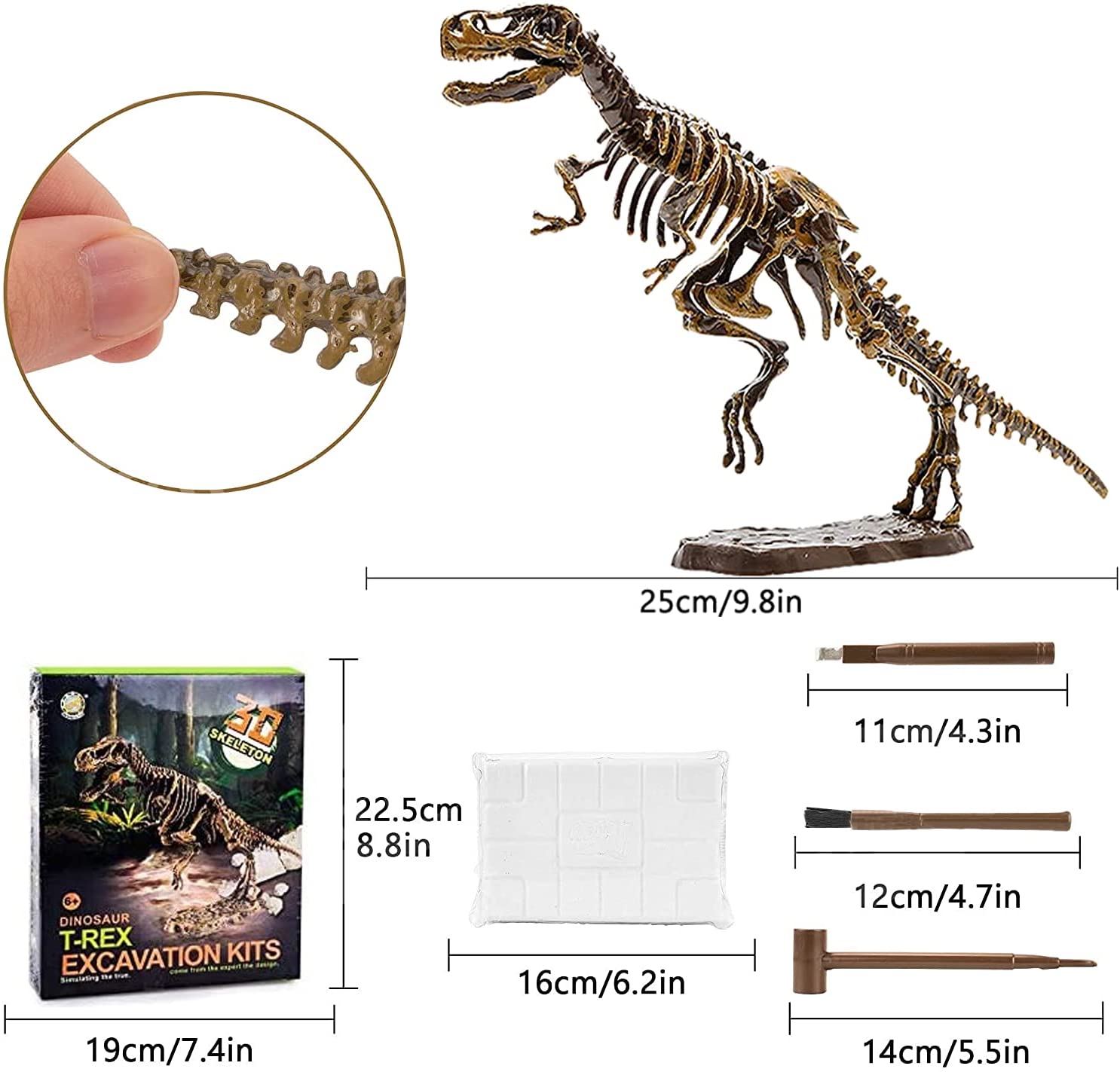 - Complete excavation kit: The excavation kit contains 10 pieces of Tyrannosaurus Rex skeleton, 1 gypsum Block,1hammer,1brush, 1awl, 1instruction