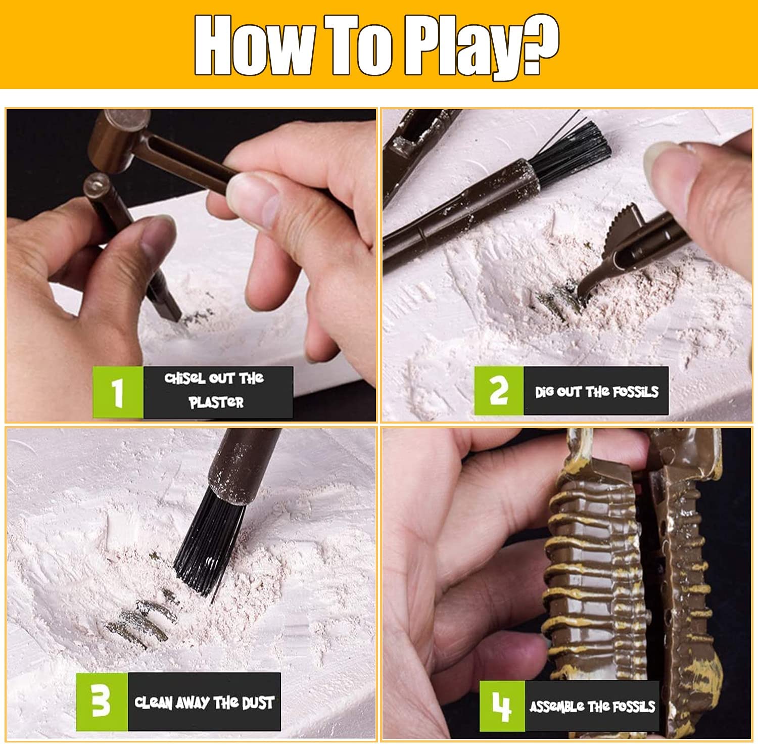 - Play and study: Dig up and assemble, our skeleton fossil digging kit stimulates children’s interest of dinosaur age, archeology & national geography, and develop hand-eye coordination and 3d thinking improve the patient and so on. TIP: spraying some water make it easier to dig up